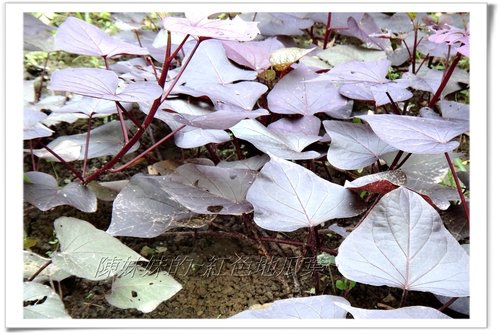 並從基隆寄來紅色地瓜葉來讓我栽種在後院,