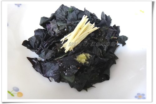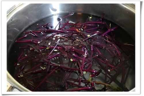 紅地瓜葉梗(也可連葉)洗好放入鍋中,